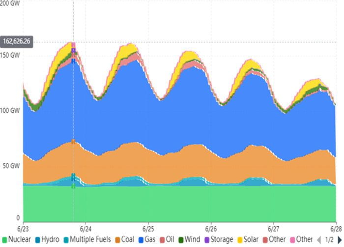 The US Middle Atlantic and Southeast states experienced five days in a heat dome from June 23-27, 2025. This extensive heat dome stressed the electric generation, transmission and distribution resources of the region, including those of the Pennsylvania / New Jersey / Maryland (PJM) Regional Transmission Operator (RTO), the largest ISO in the US. PJM issued an emergency declaration in anticipation of the effects of this heat dome on demand and consumption, requiring all generation resources to be available for full capacity operation throughout the period, as displayed on the PJM Live Dashboard.
